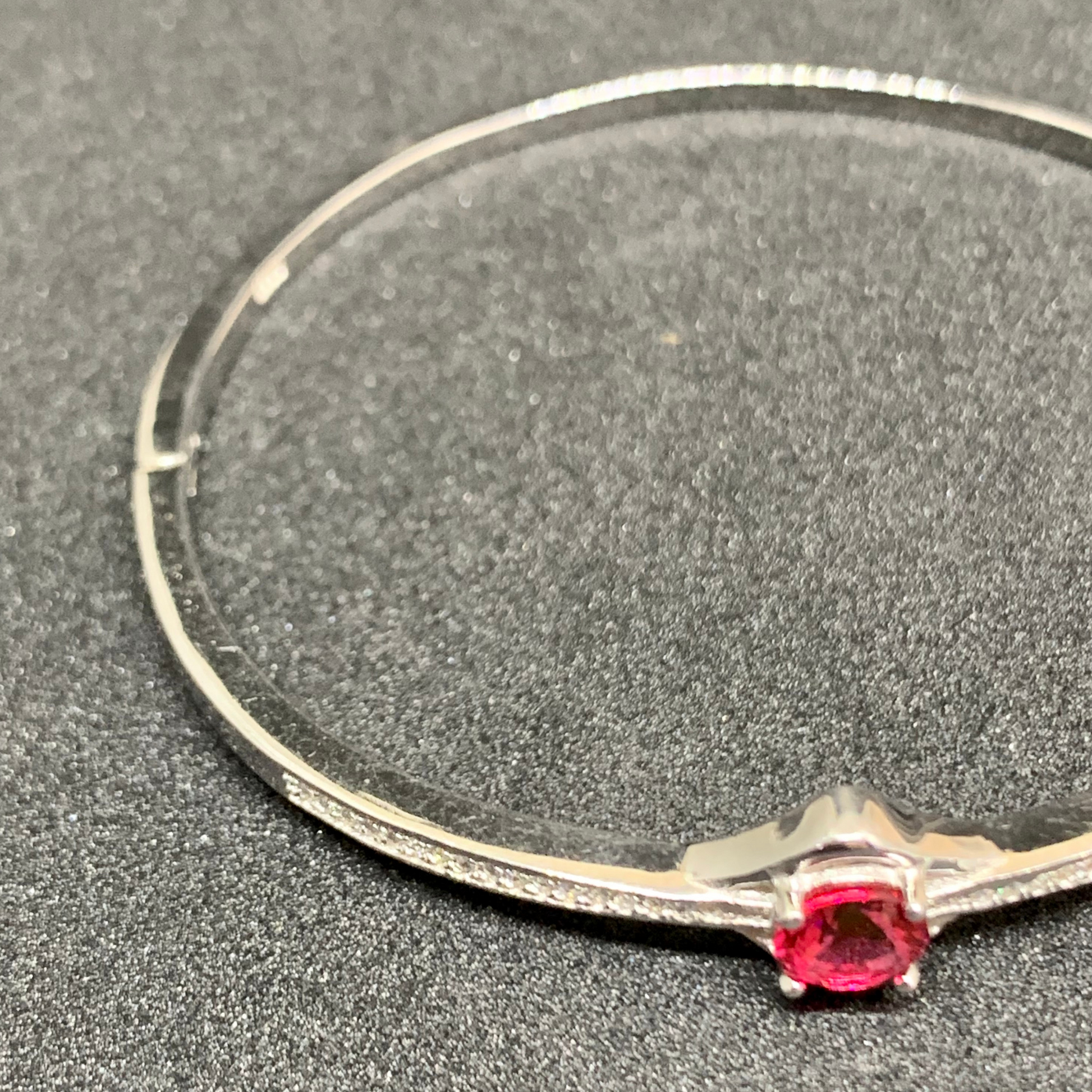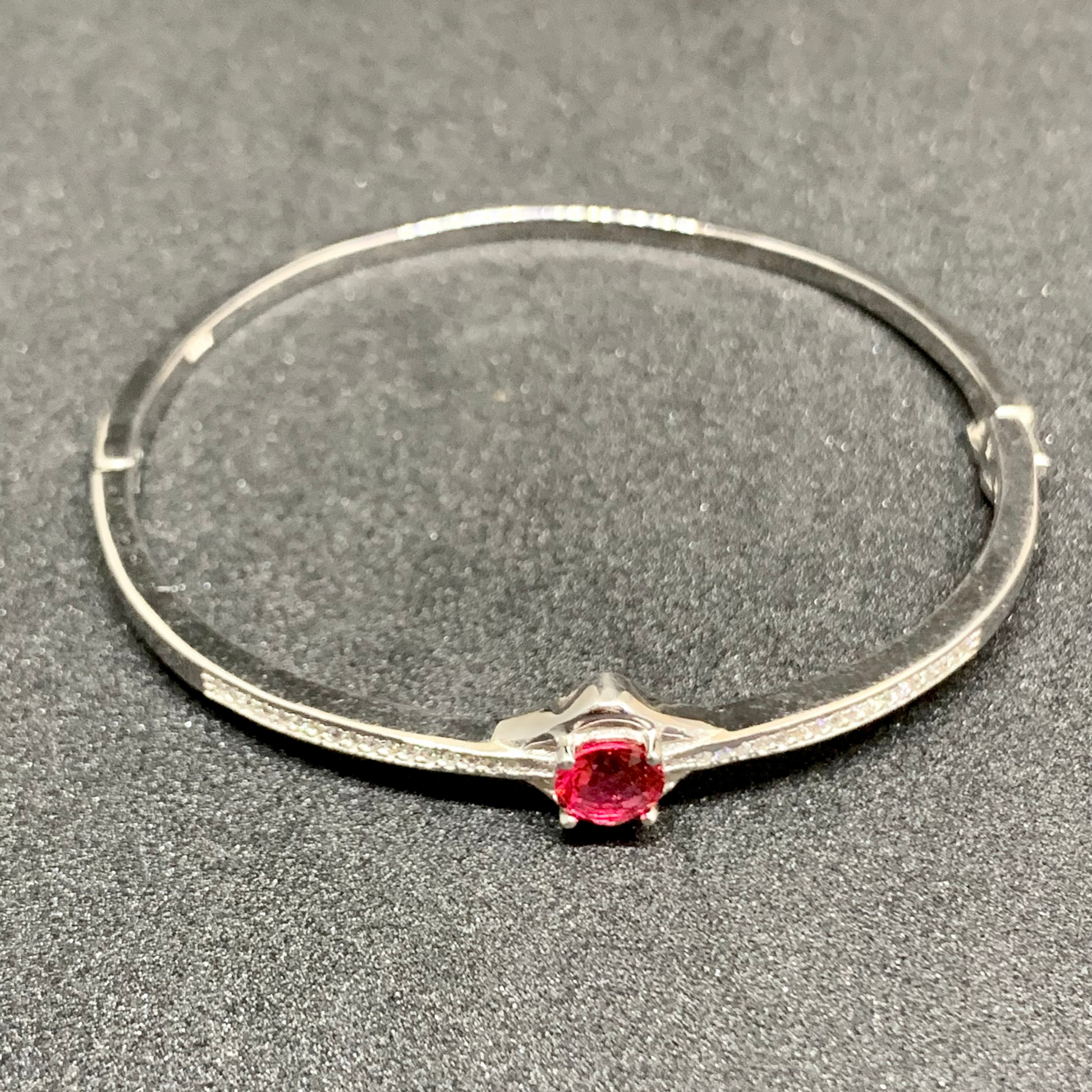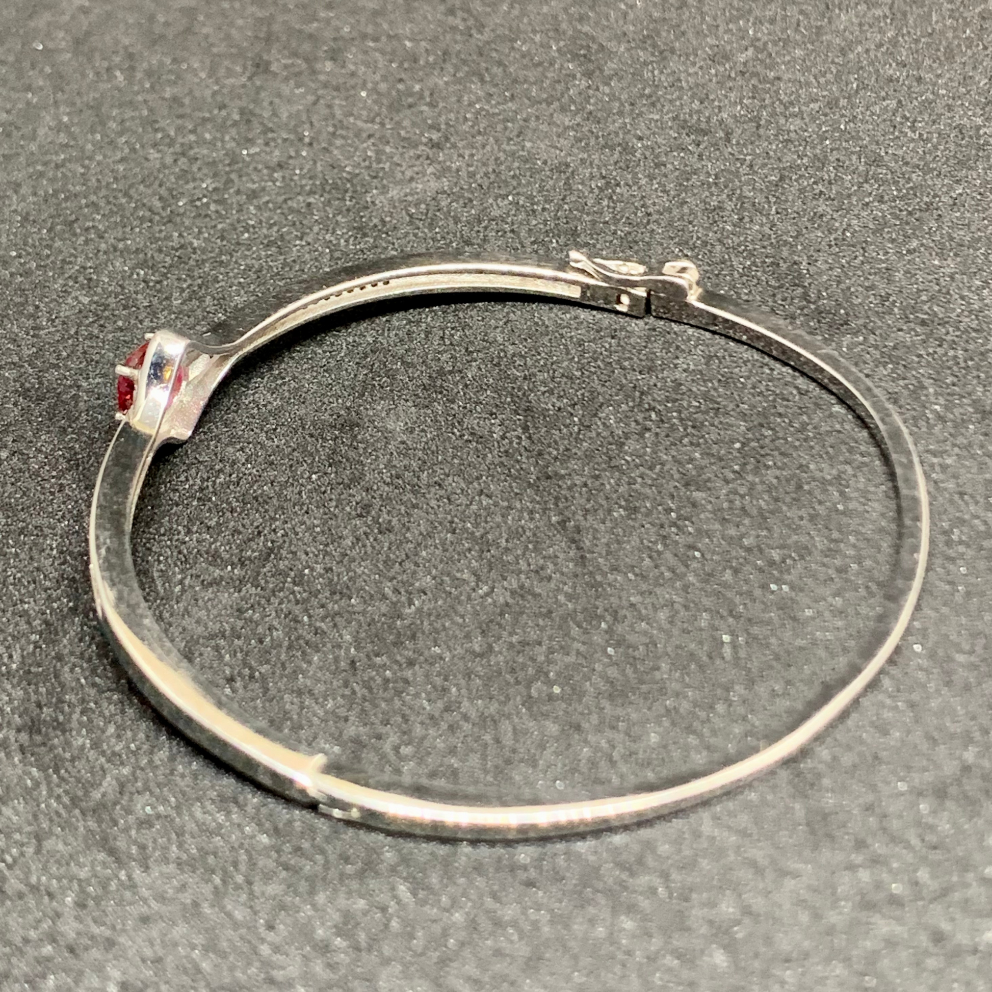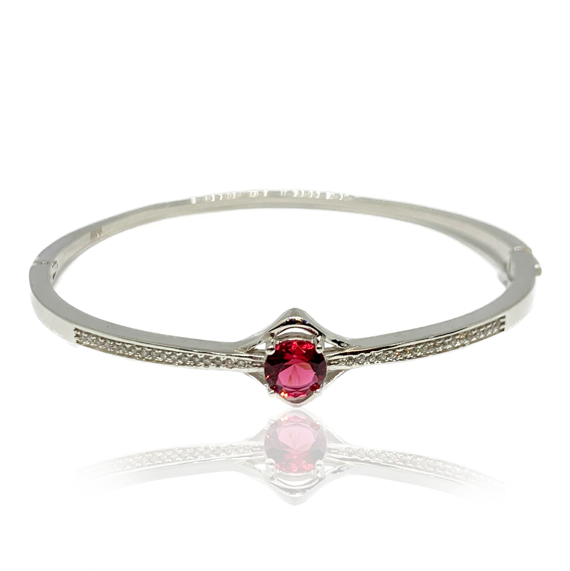 - Made with high-quality materials, this bangle features beautiful ruby gemstones set in a delicate yet durable silver or tone band.